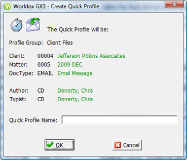 Used in creating new quick profiles as you are profiling copied email or moved email into Worldox.