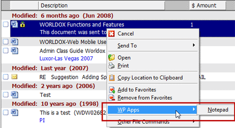 That instructs Worldox to place a Notepad listing directly on the top-level right-click menu, rather than on the Send To submenu: