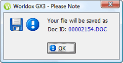 As the new profile is saved, Worldox assigns a new Doc ID to the attachment, and tells you what the Doc ID is in a Please Note message.