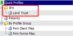 Example: Naming the quick profile" JPA\Land Trust" creates both a folder and a quick profile listing within it, as shown here: