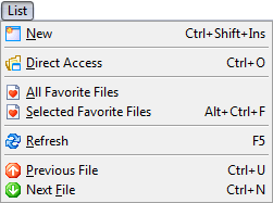 | All Favorite Files | Opens a new worklist displaying all Favorite Files, in all favorite file categories. Note: This is the same effect as selecting all in the List > Selected Favorite Files dialog. |