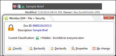 Worldox asks you to confirm this action in the File > Declassify > Security confirmation dialog. Click Yes.