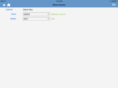 In the Worldox for iPad iPhone main screen, select Direct Access. The Direct Access screen opens.